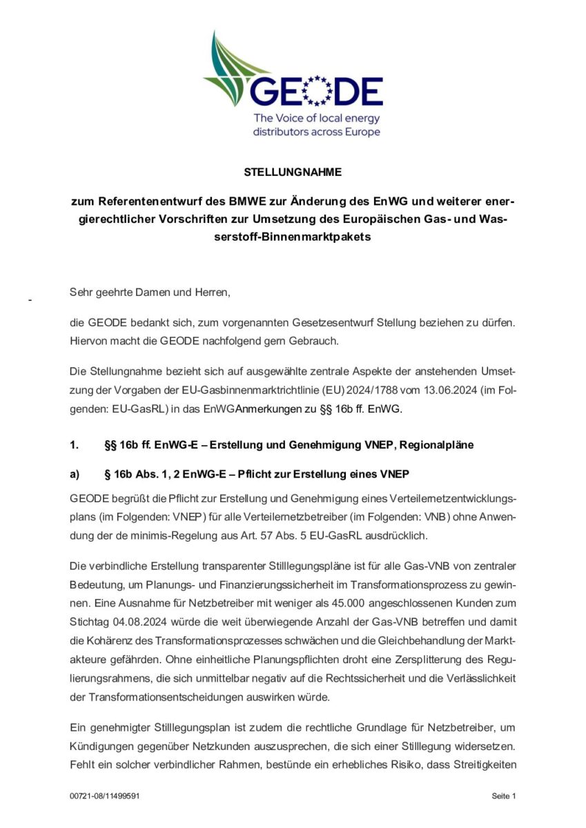 Die GEODE hat in Deutschland in den zurückliegenden Jahren viel erreicht, aber die Herausforderungen stellen sich immer wieder neu. Es wird verstärkt eine gezielte und originäre Interessenvertretung für die örtliche Netzwirtschaft gerade auch in Deutschland benötigt. Von daher wurde die GEODE Deutschland e.V. am 6. Oktober 2018 gegründet.